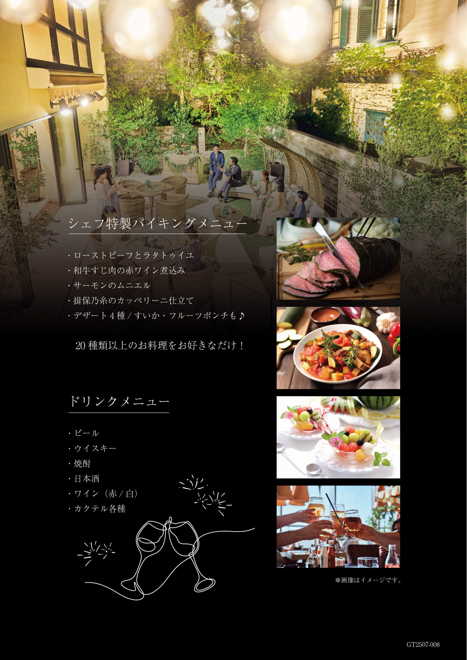 ドリンク各種 (ビール、ウイスキー、焼酎、日本酒、ワイン、カクテルなど)