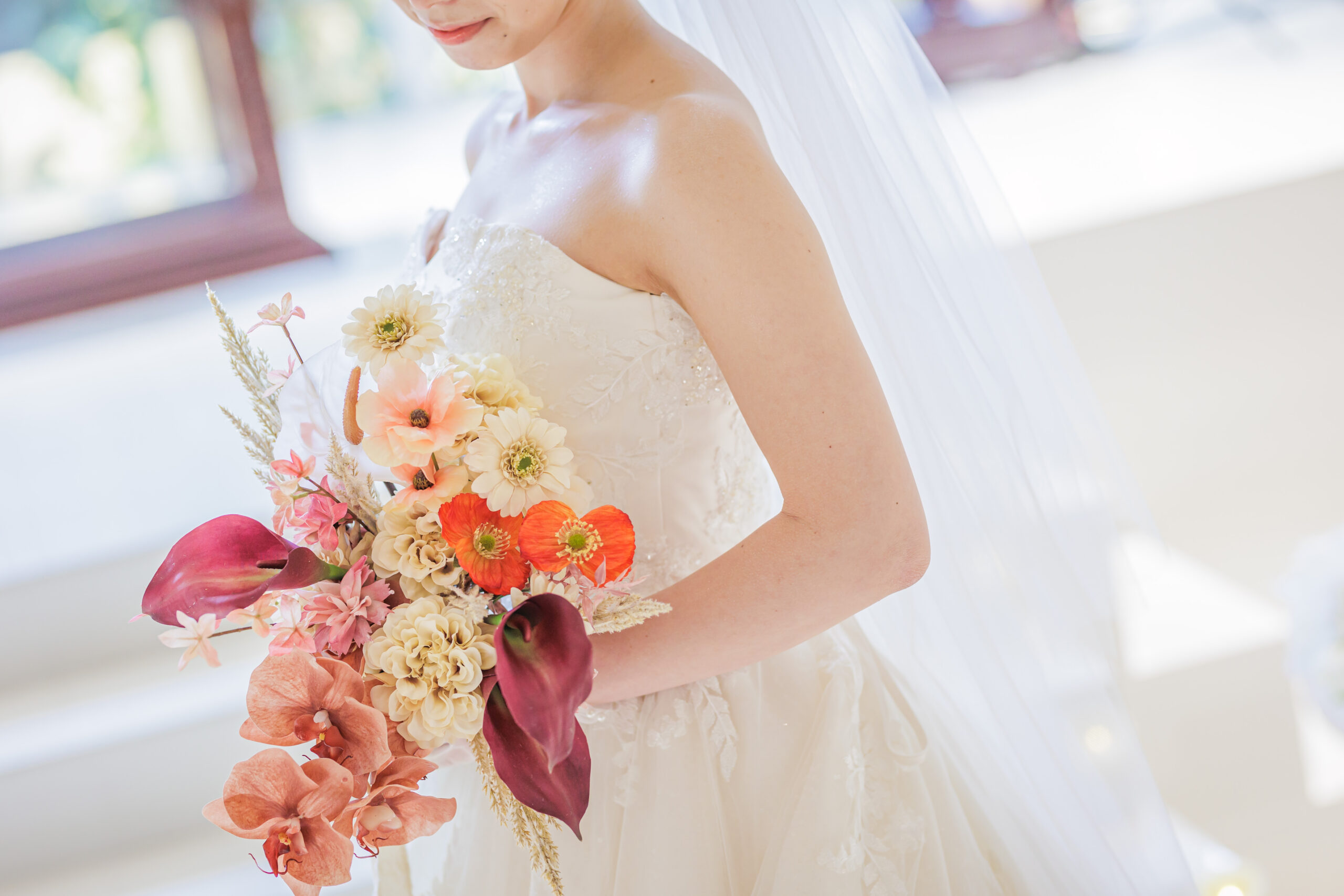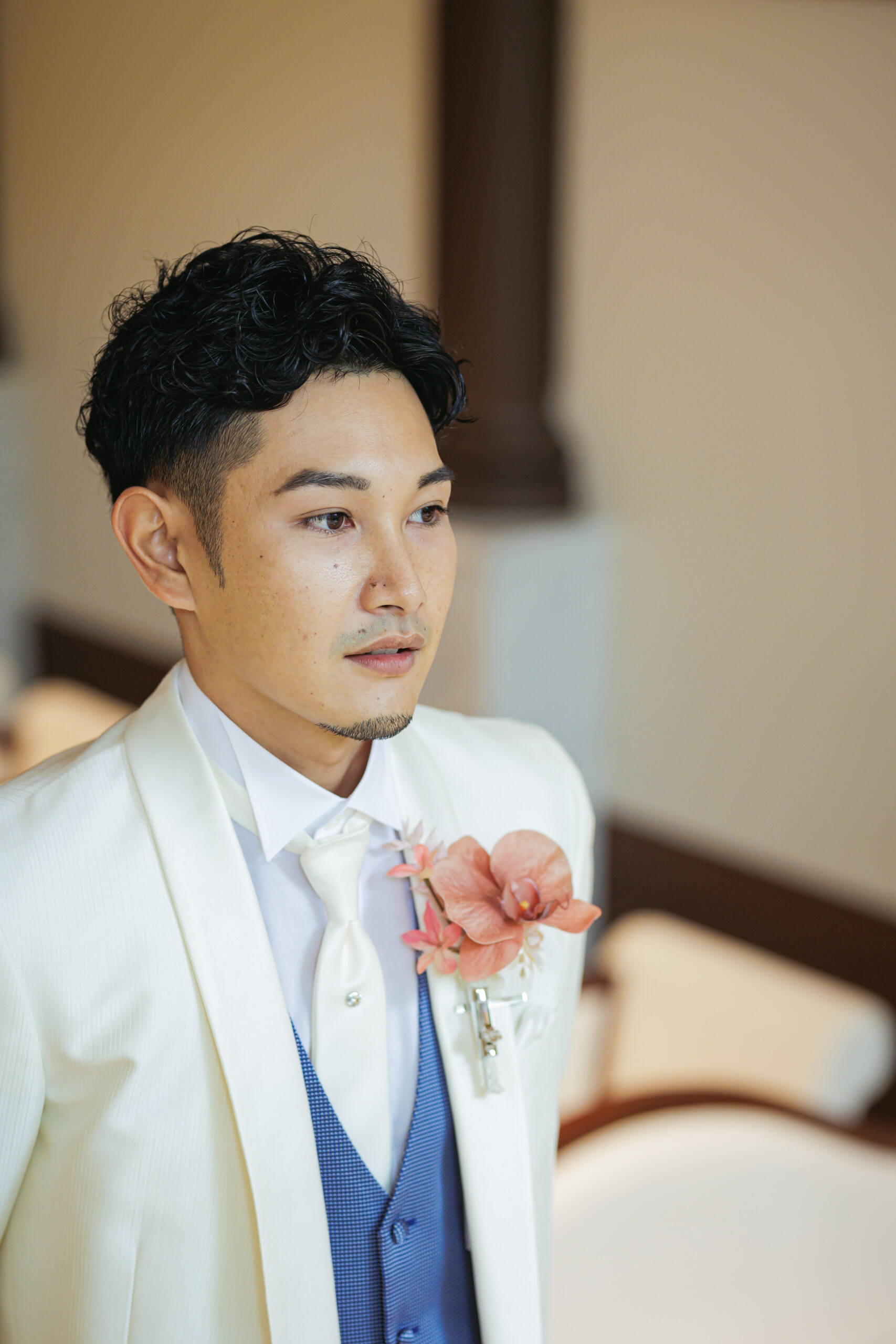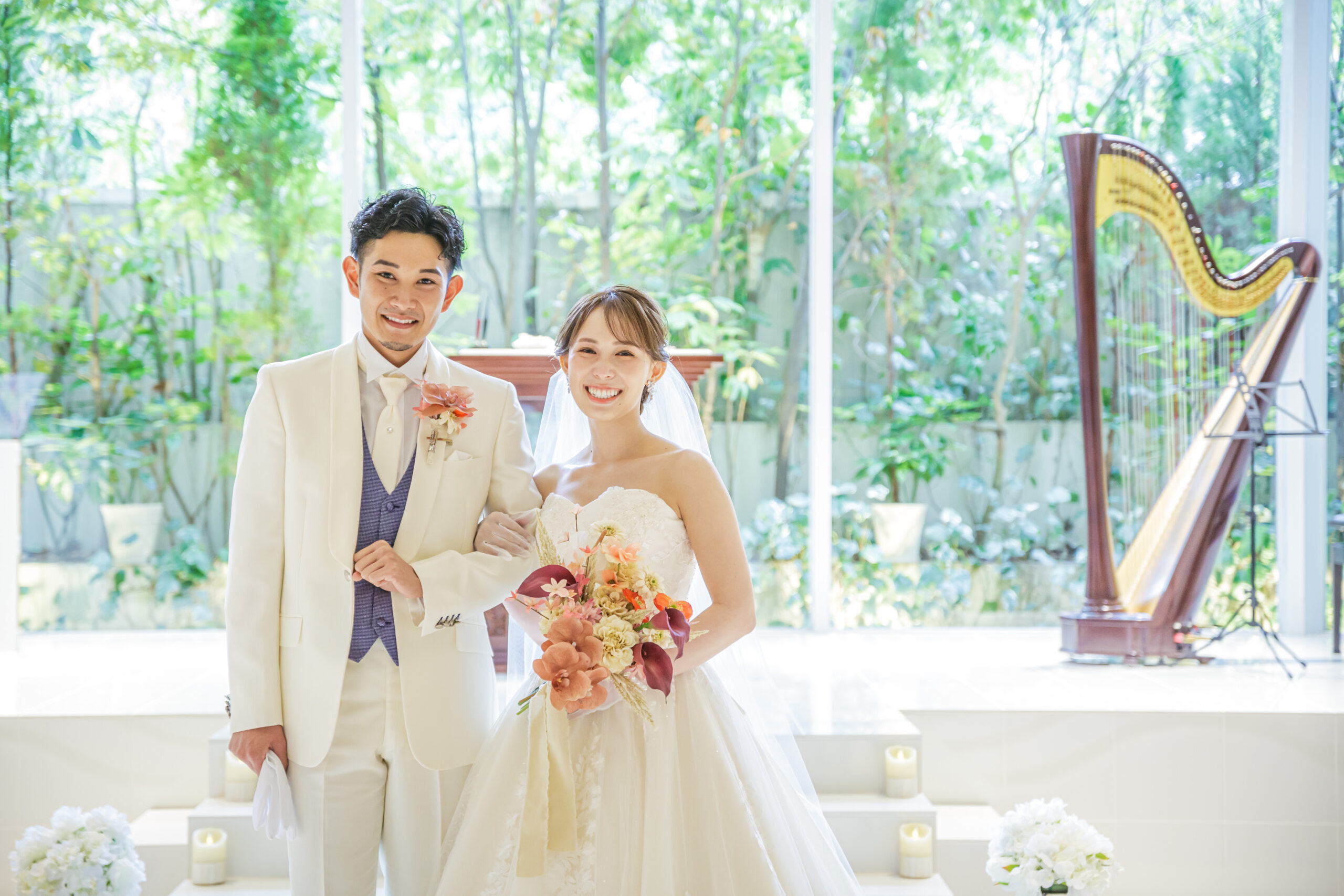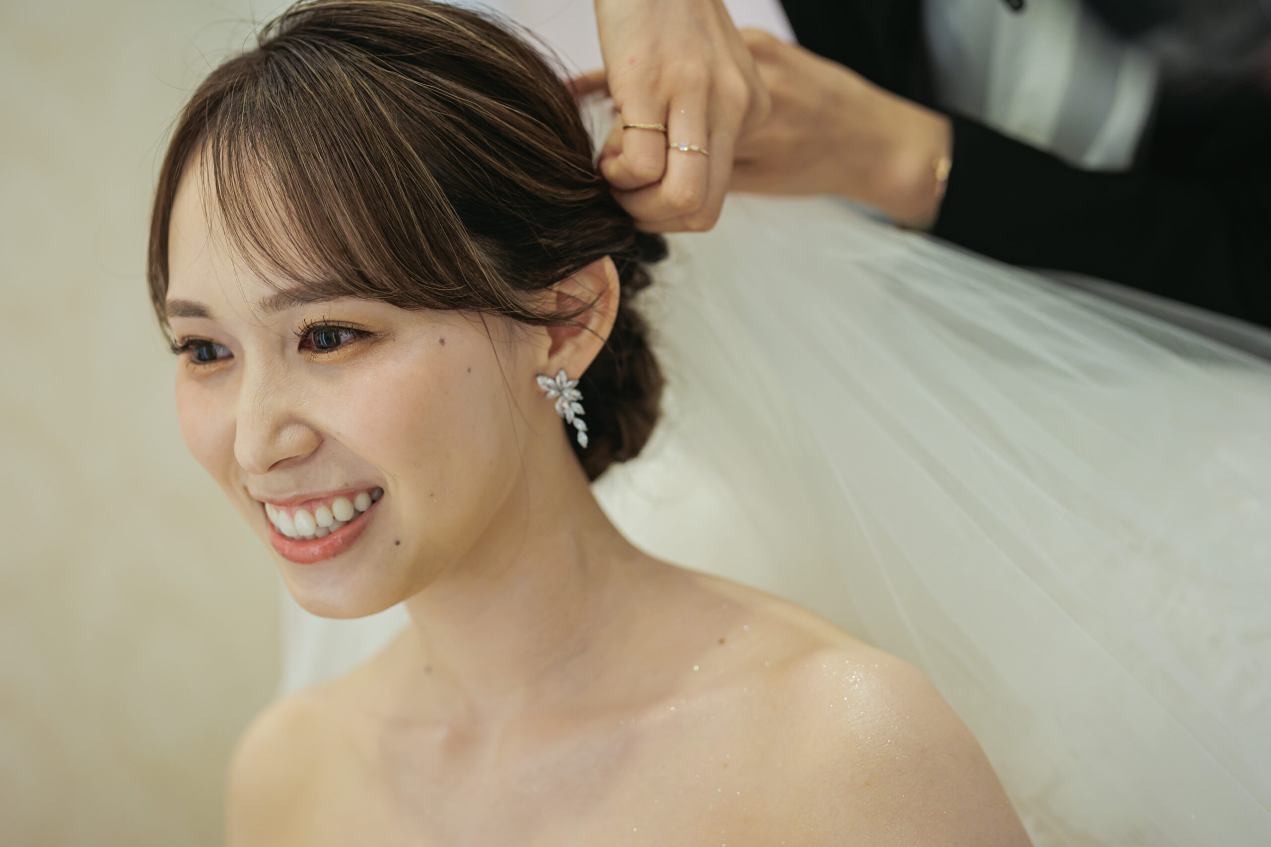 お支度中は少し緊張気味だったおふたりですが、カメラを向けると、おふたりらしいキラキラとした素敵な笑顔に。