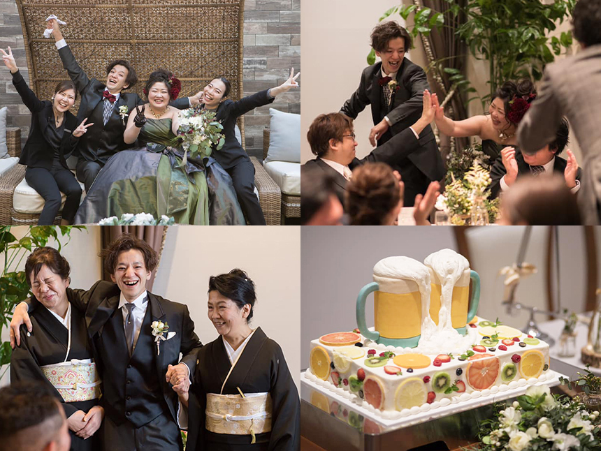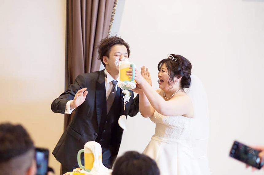 手作りグラス&ビールケーキで盛り上がる結婚式