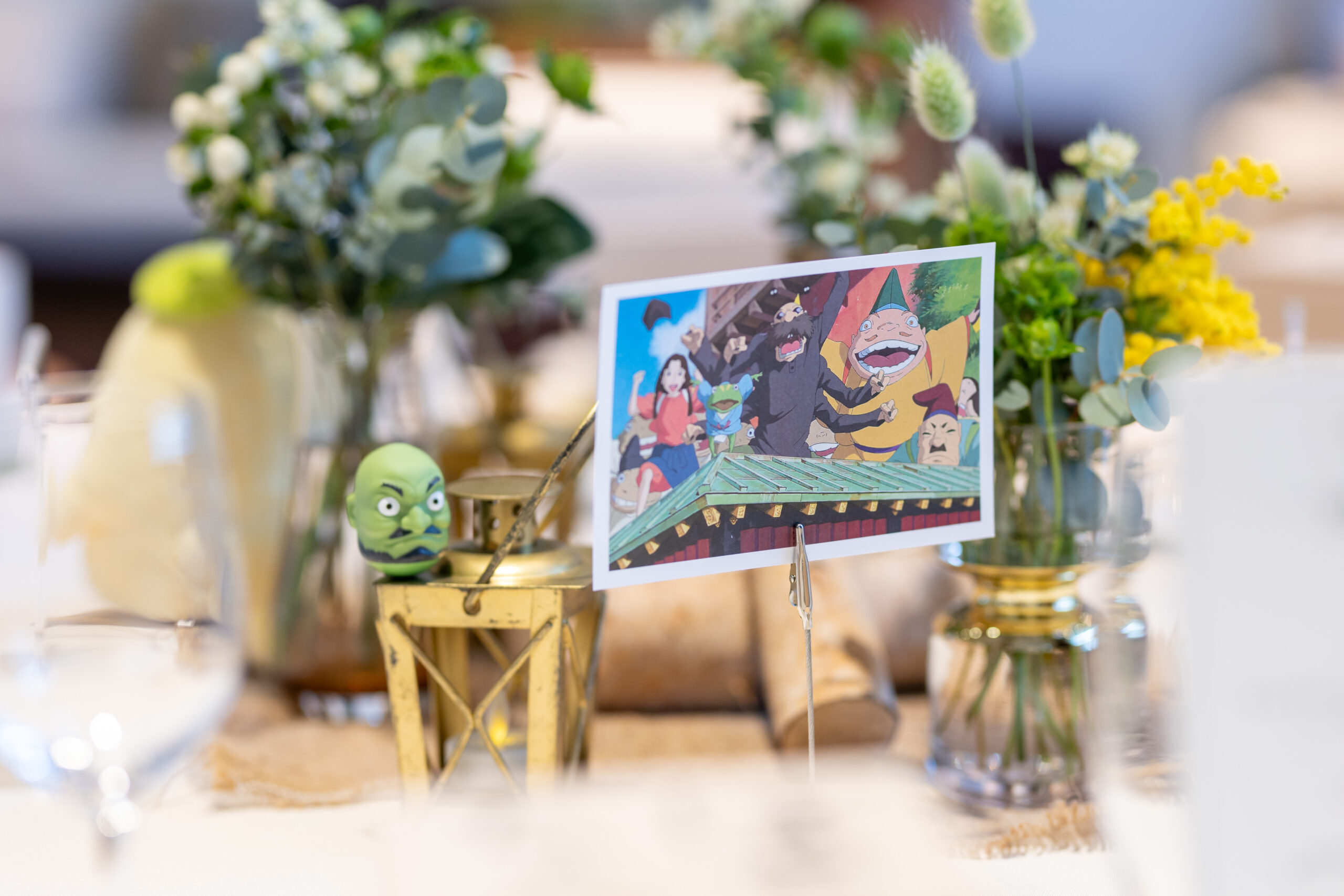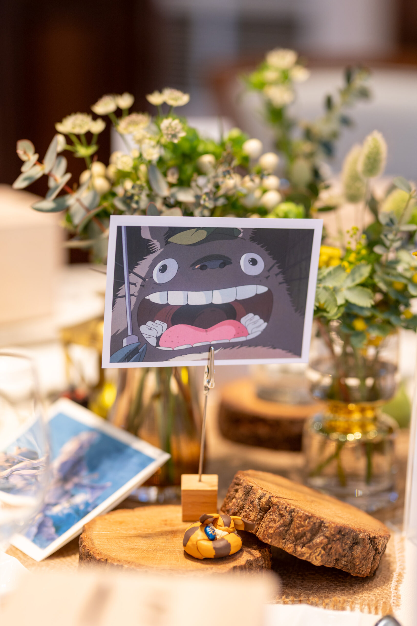 ゲストテーブルはテーブルごとにジブリキャラクターのイメージしてコーディネートしました