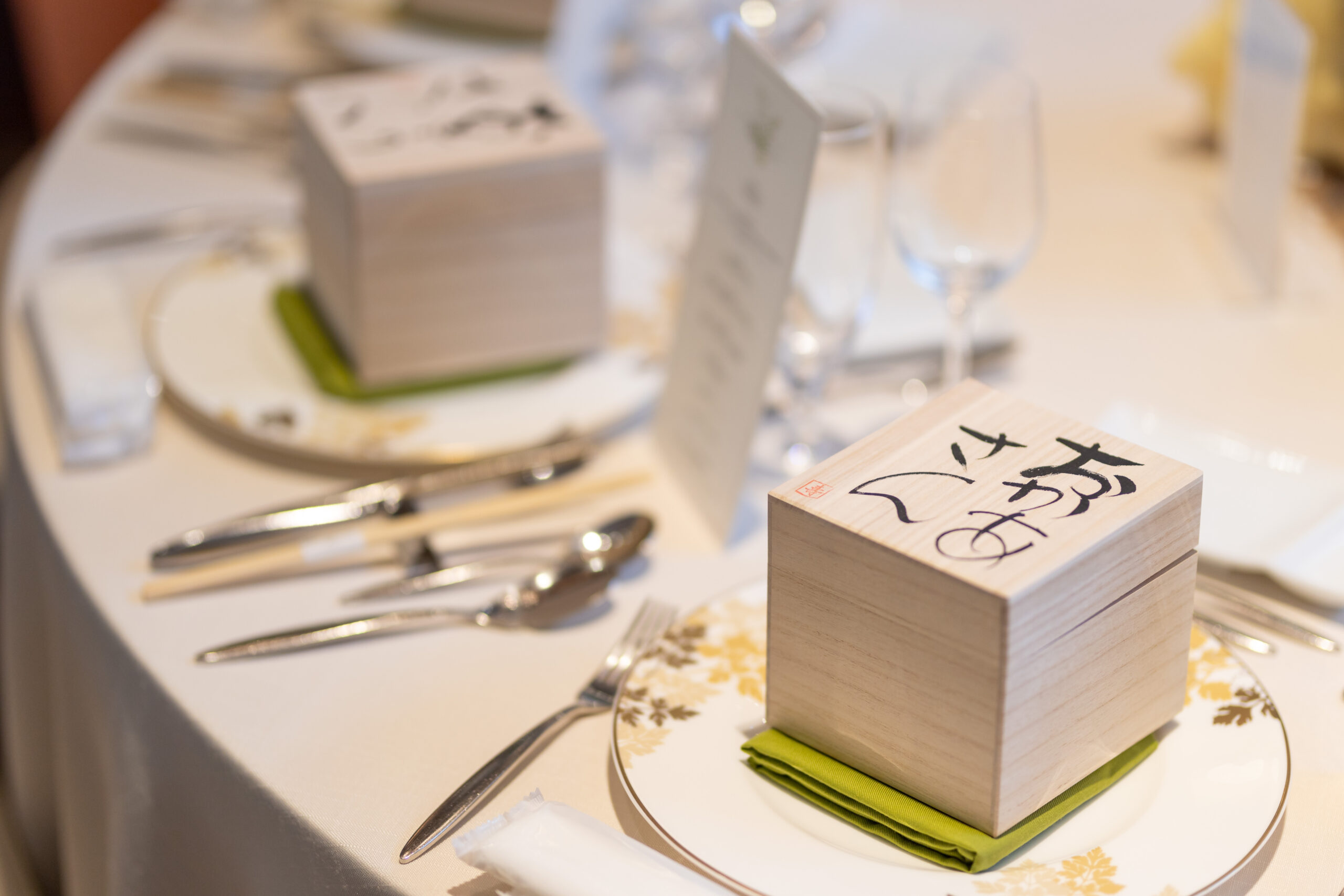 ゲストのお席にはお名前が書かれた木箱が置いてあります