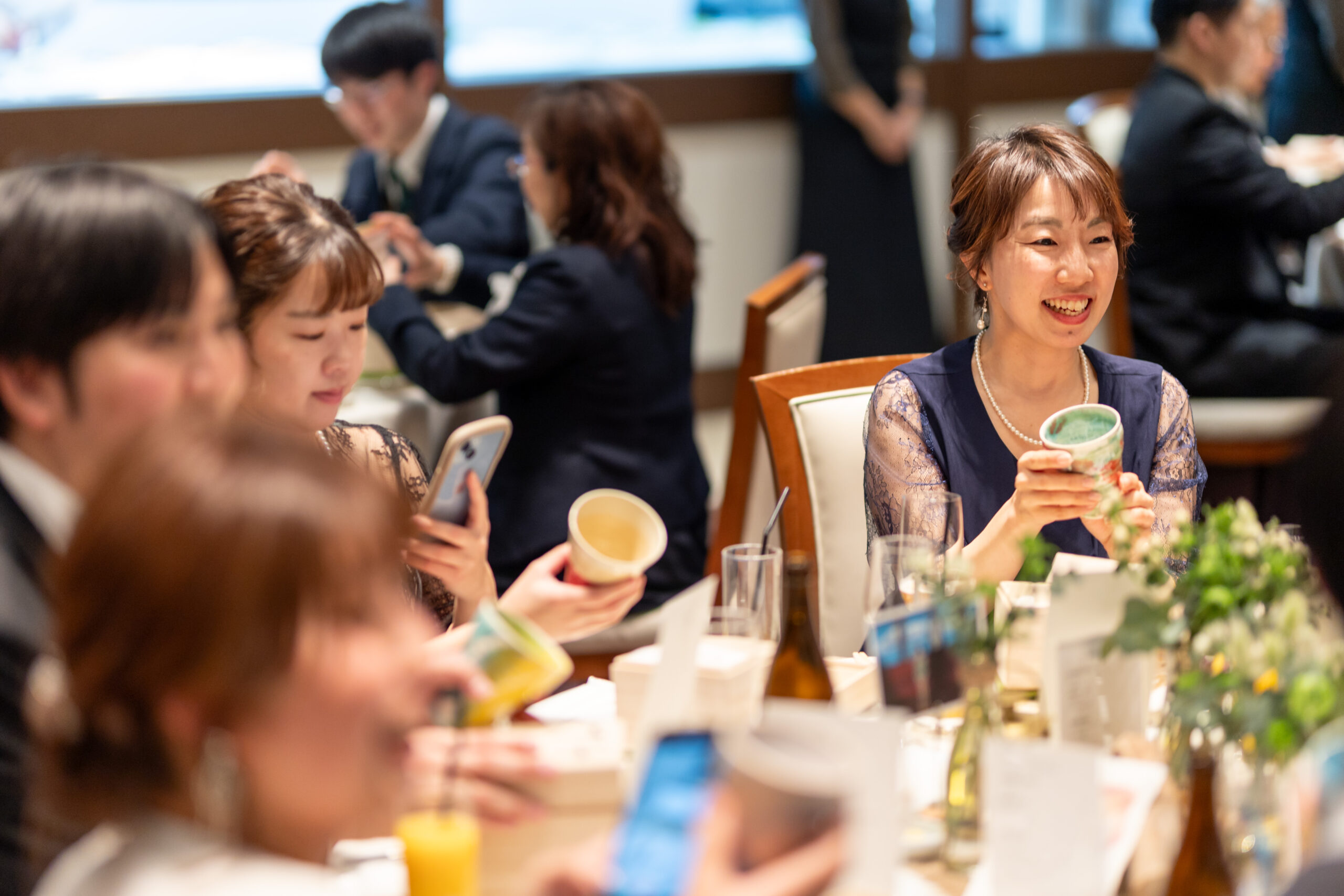 ゲストはオリジナル湯のみにも乾杯酒を注ぎ、乾杯!
