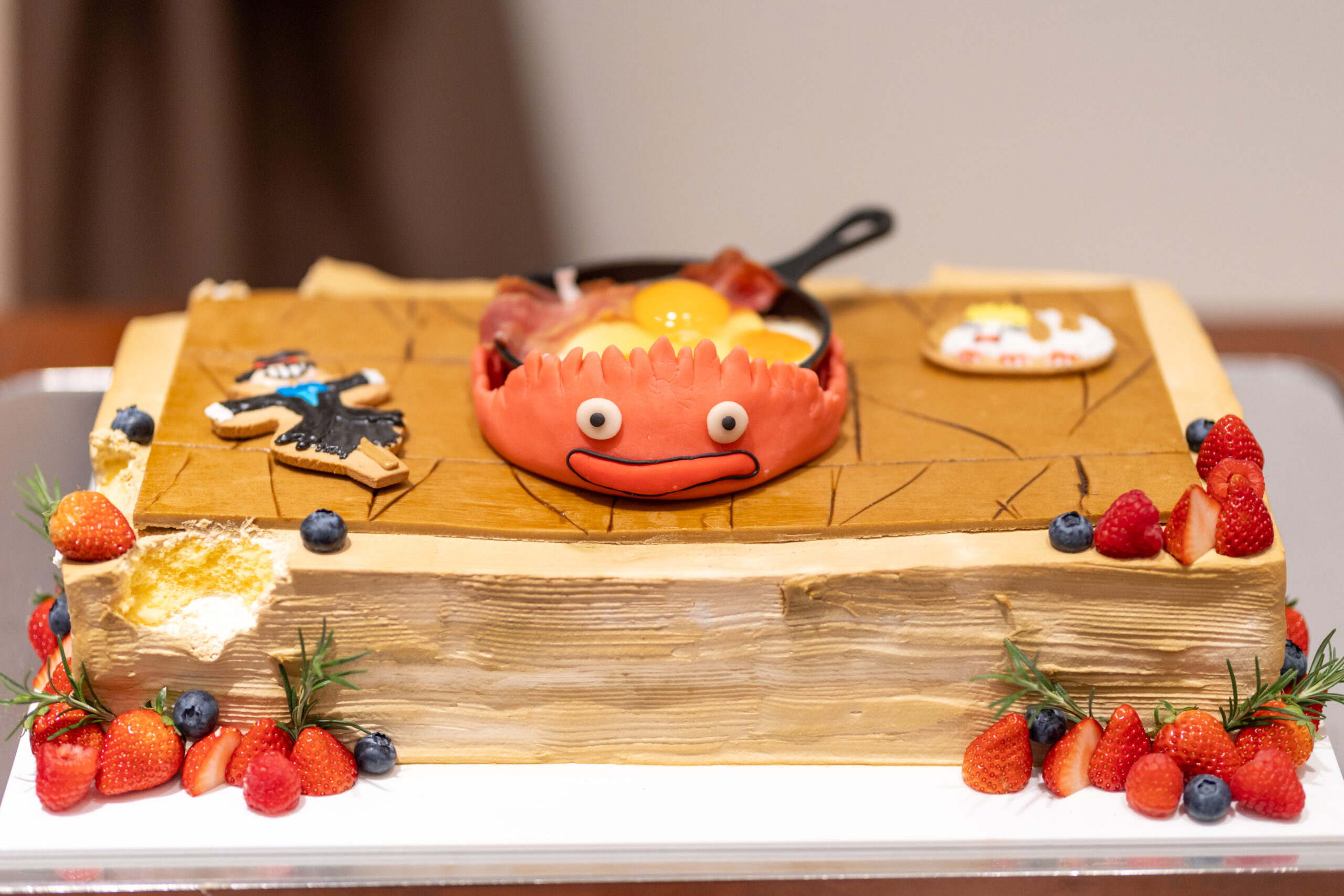 ウェディングケーキは「ハウルの動く城」にでてくるカルシファーをモチーフにしたケーキ