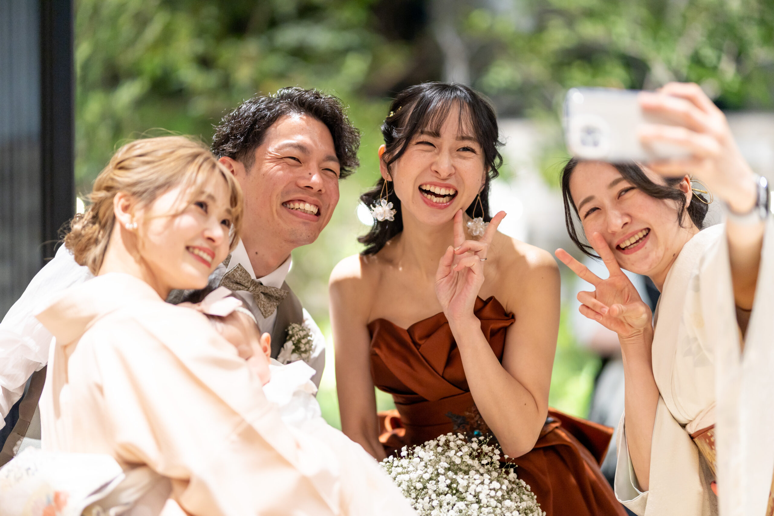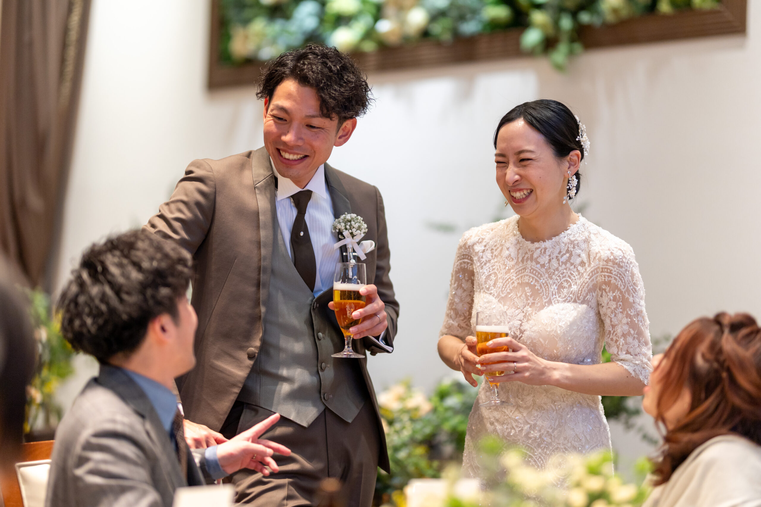 結婚式だから…という概念を脱ぎ捨てて、いつもの自然体な姿で楽しまれている新郎新婦に、ゲストの皆さまも緊張されることなく会話を楽しされていました