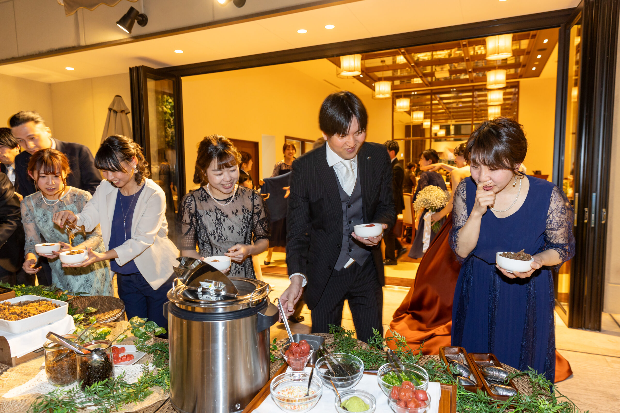 ゲストには心も身体もあたたまっていただきたいという想いをこめてお茶漬けビュッフェをご用意しました♡