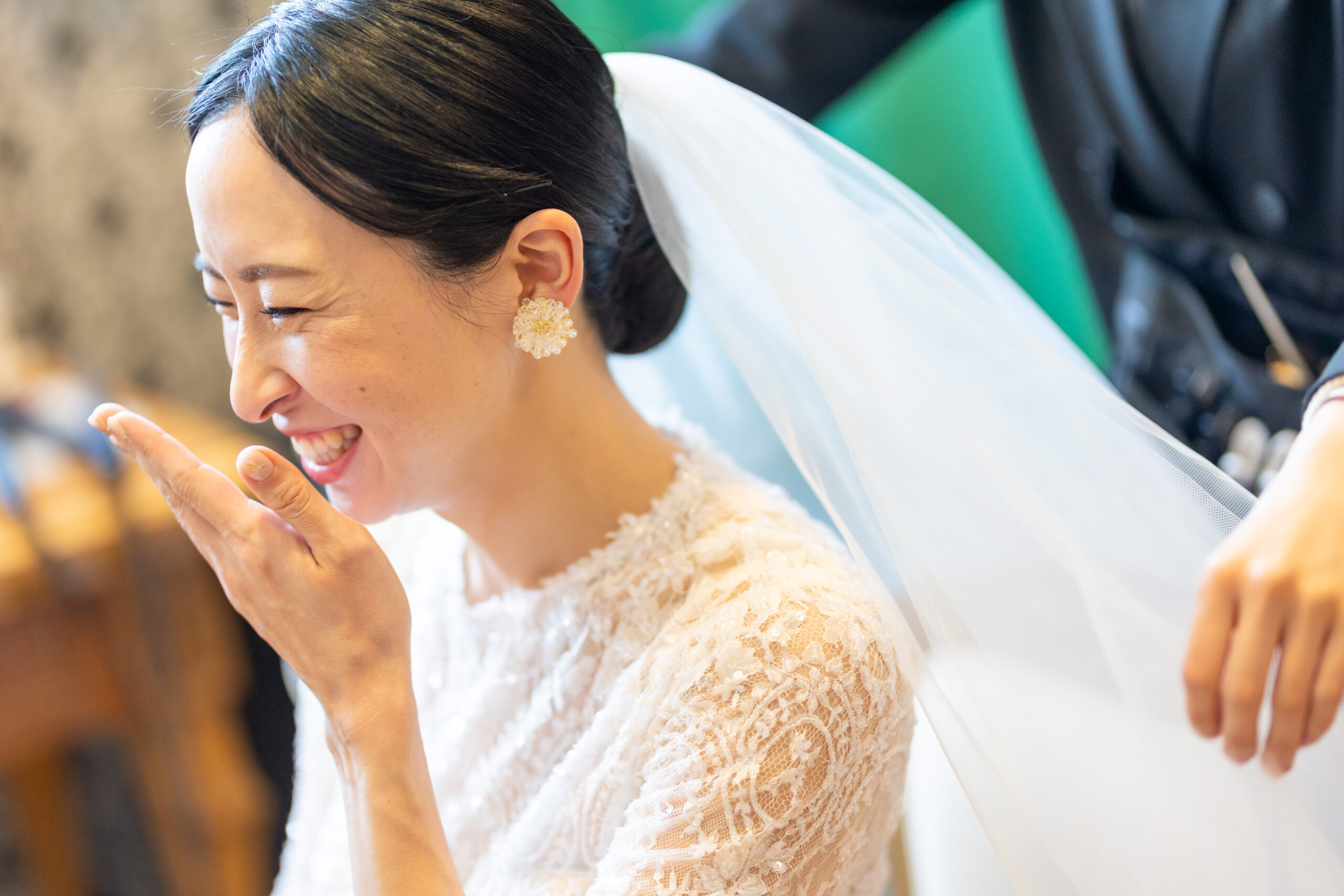 これから始まる1日を想像し自然と笑みがこぼれる新婦様