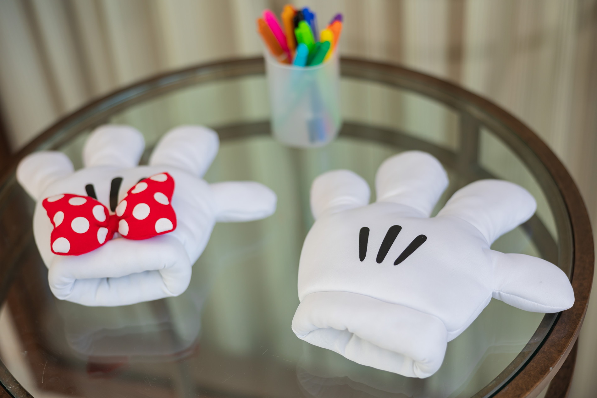 おふたりの手にはミッキー&ミニーの手が。