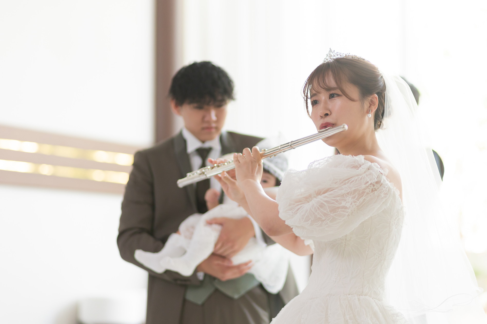 吹奏楽経験のある新婦様から、親御様へサプライズでフルートの演奏を行いました