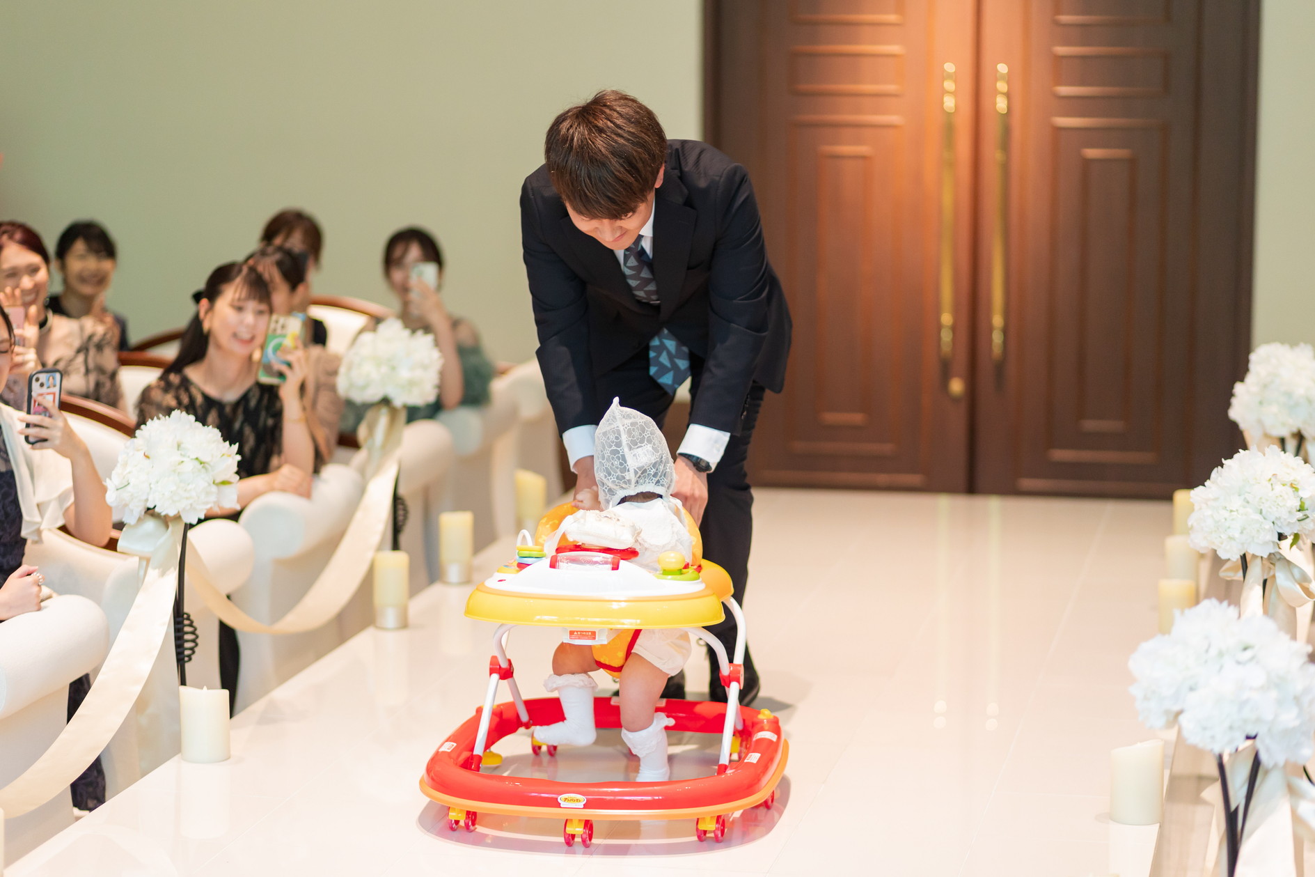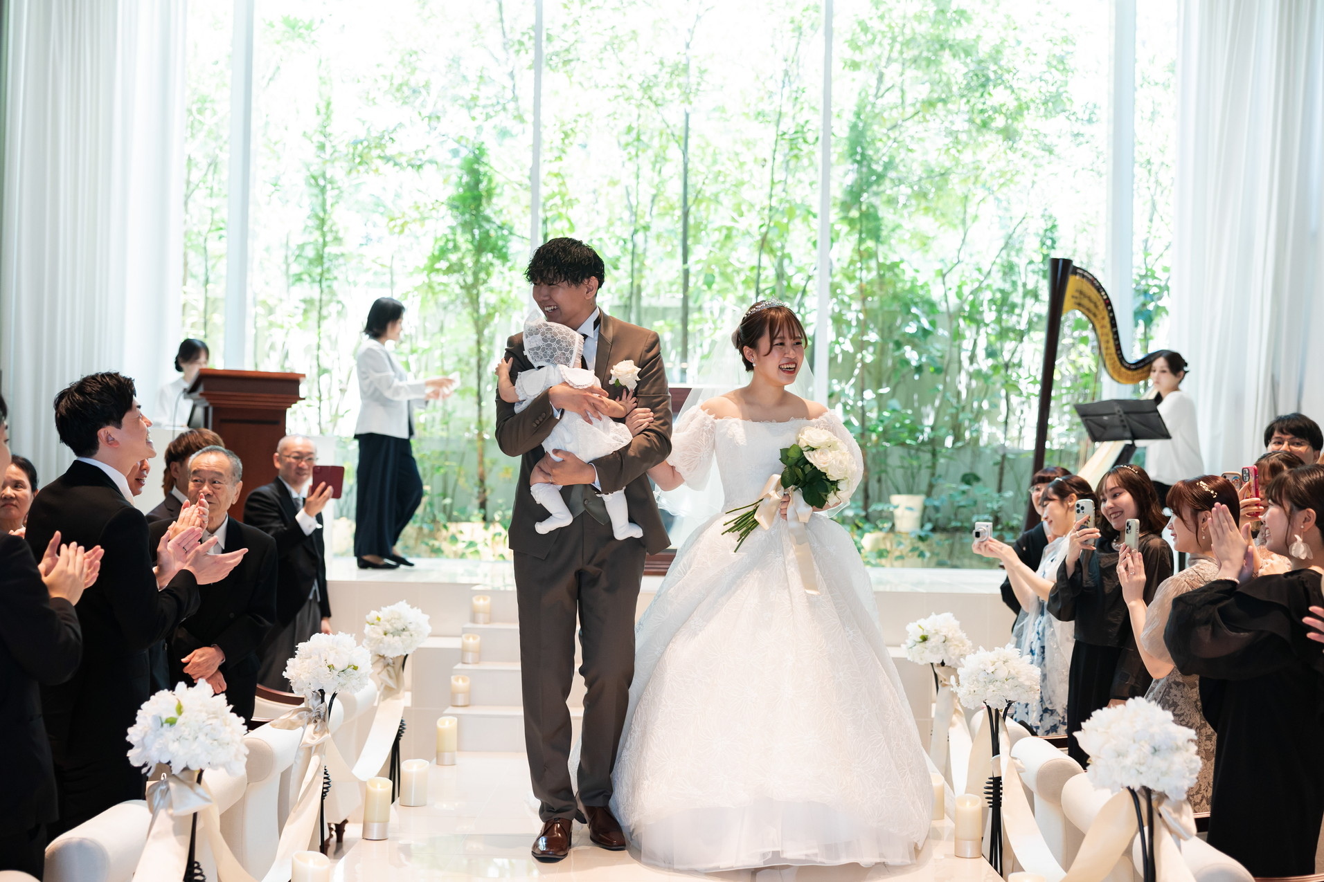 退場後には家族3人でのクロージングハグで挙式が結びました