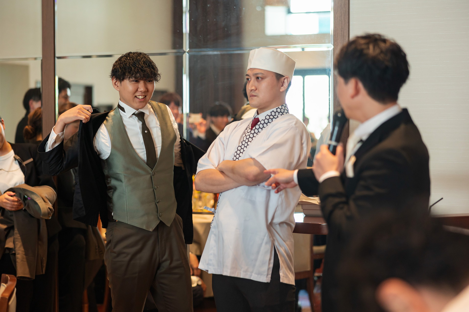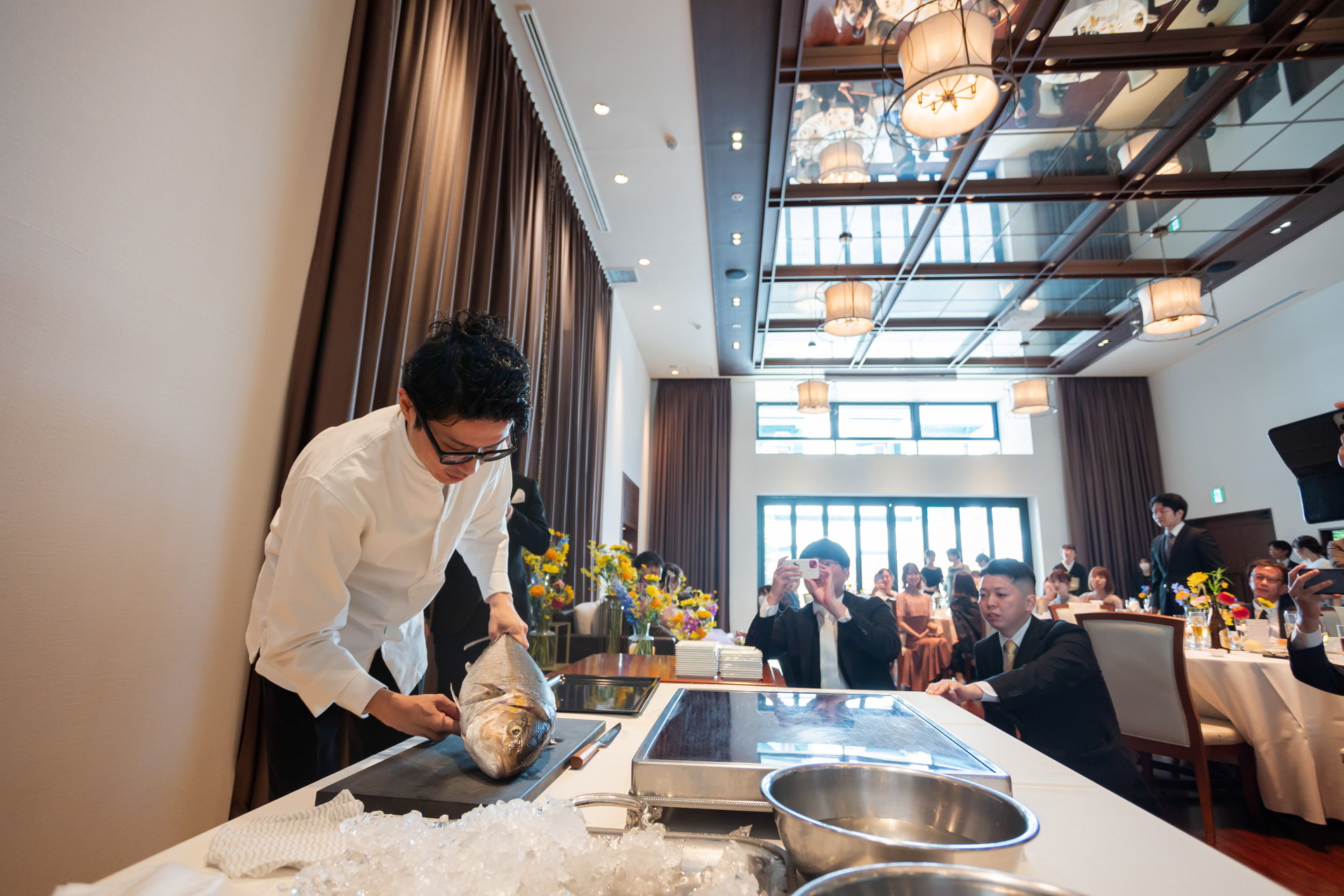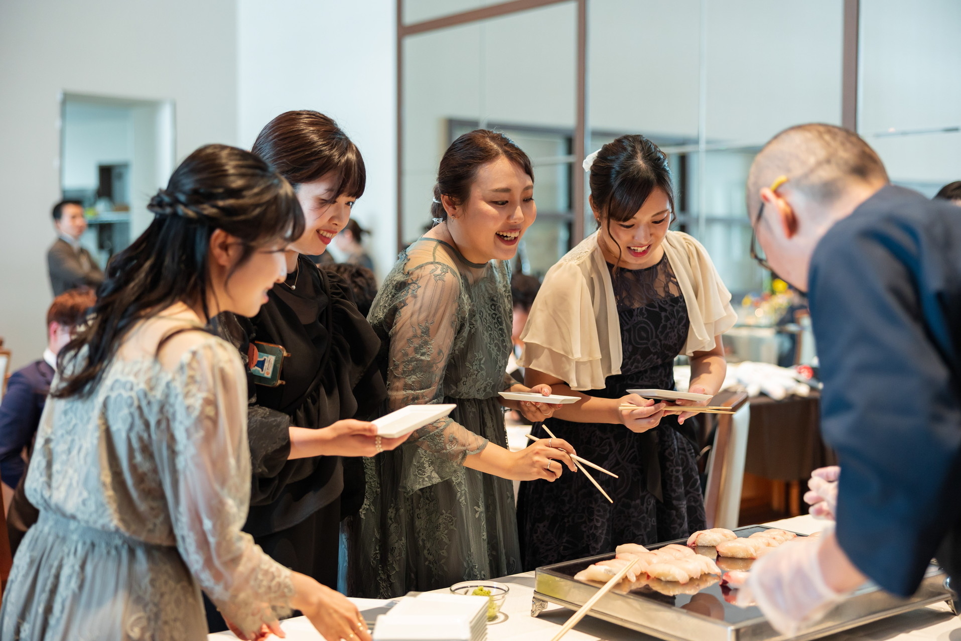 新郎様の職場の方のご協力の元、「お寿司」を職人が目の前で握るパフォーマンスを行いました!