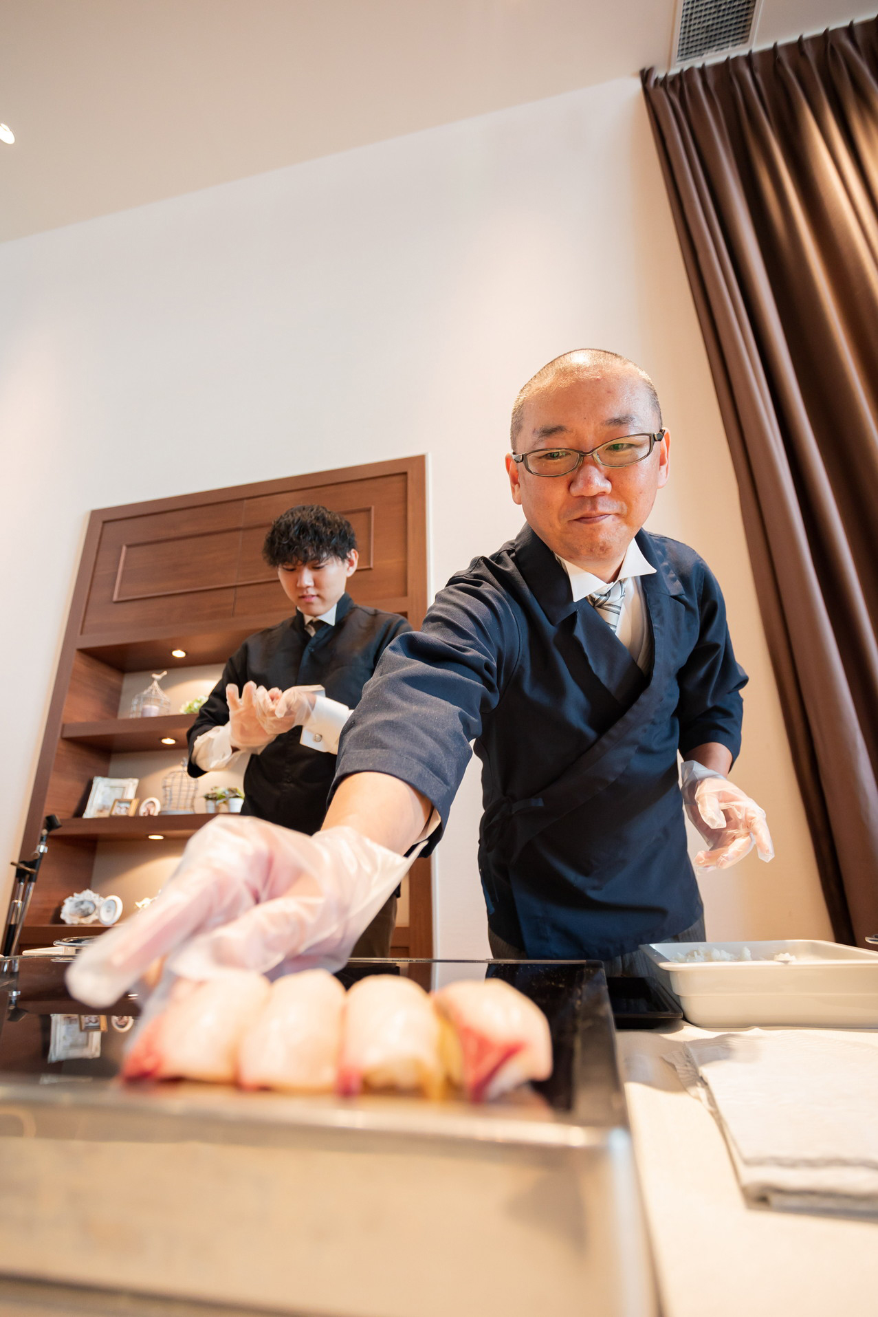 料理の楽しさや、奥深さを教えてくれたお父様と一緒に、ぜひ皆さまの前で親子揃ってお寿司を握っている姿をお披露目したい!というご希望から、お父様にもご協力いただきました。