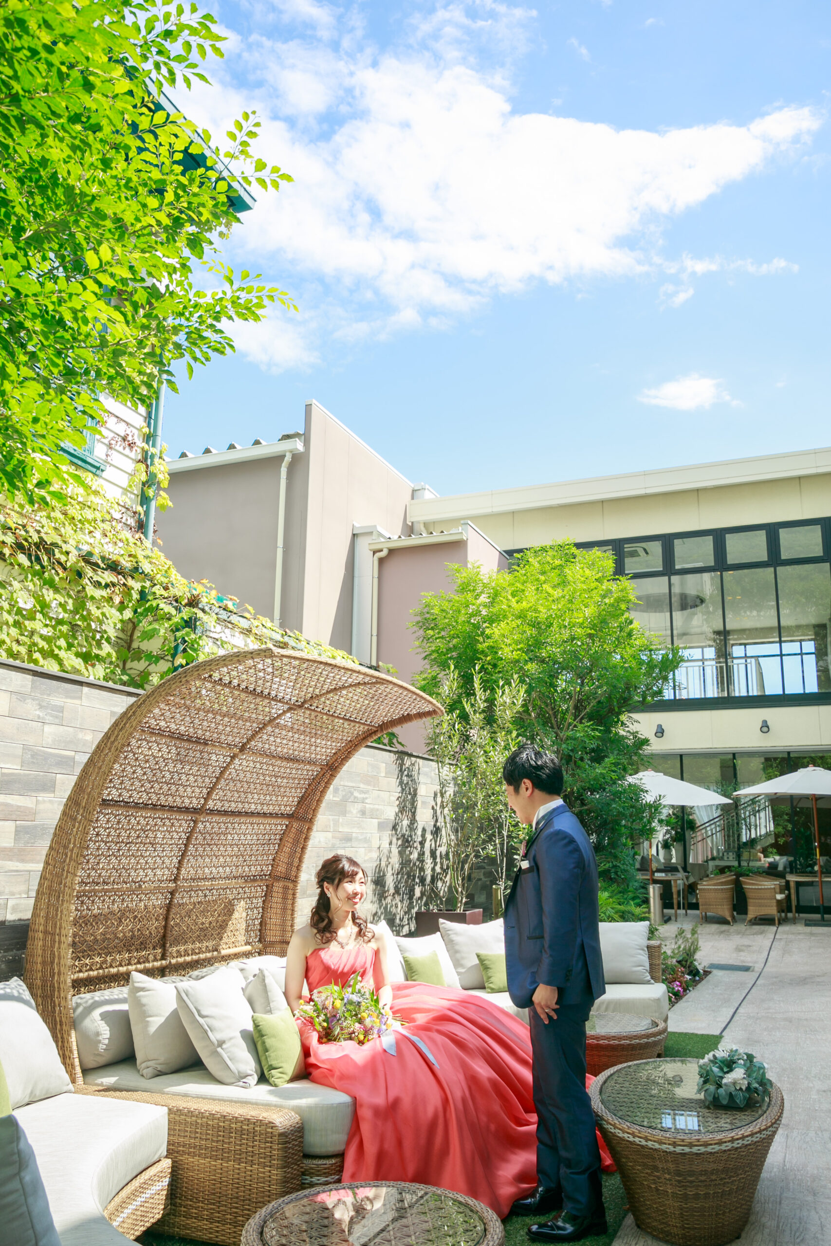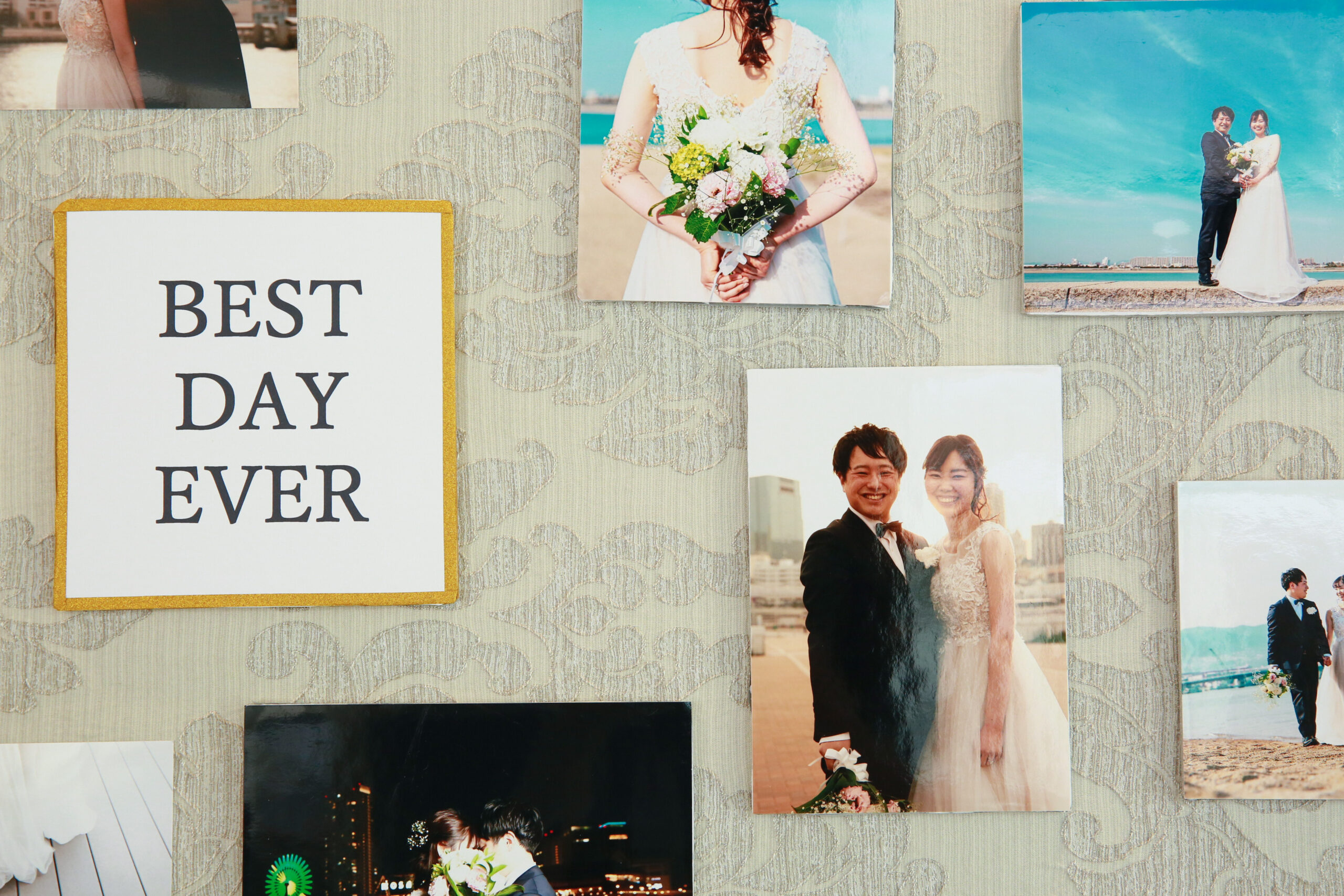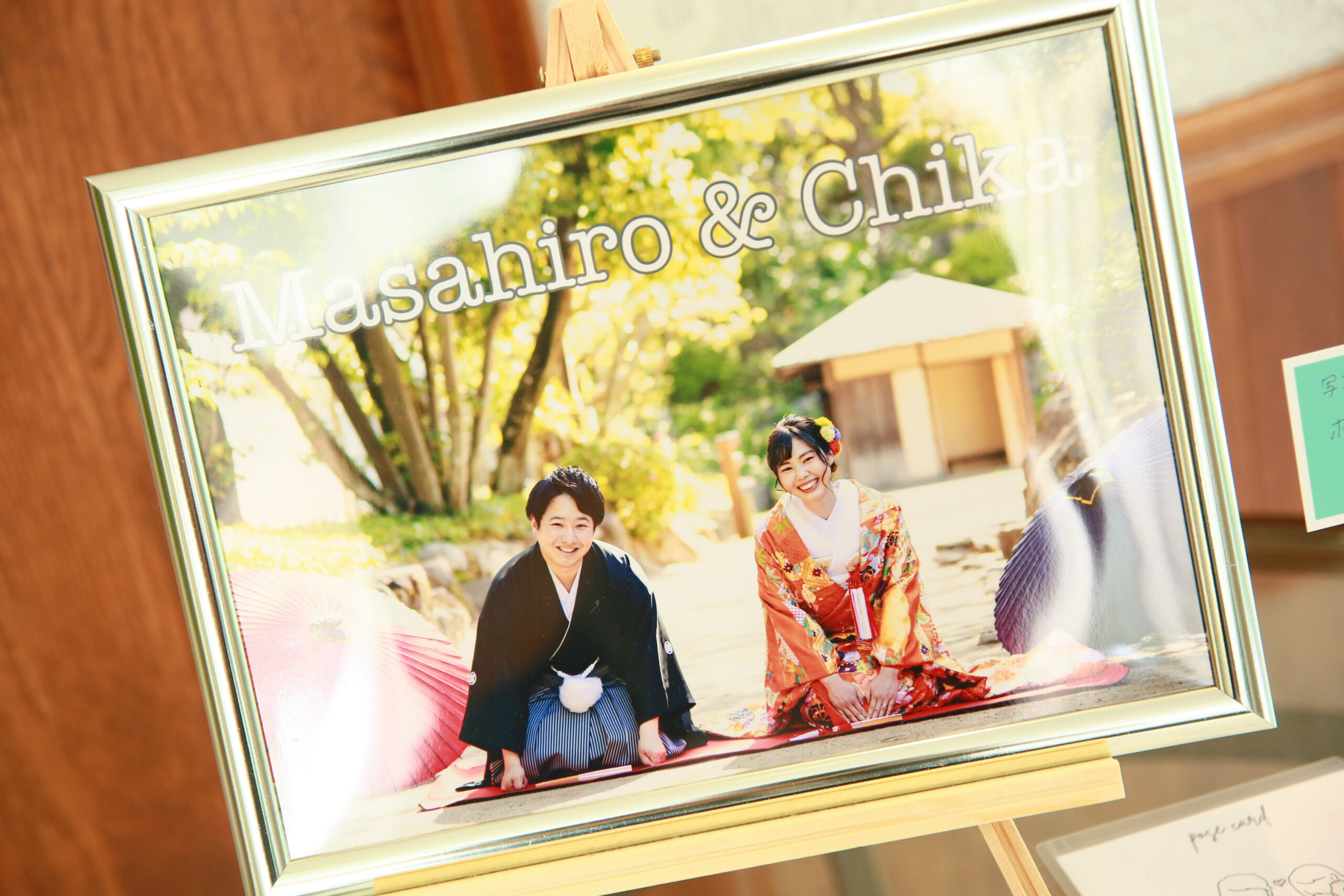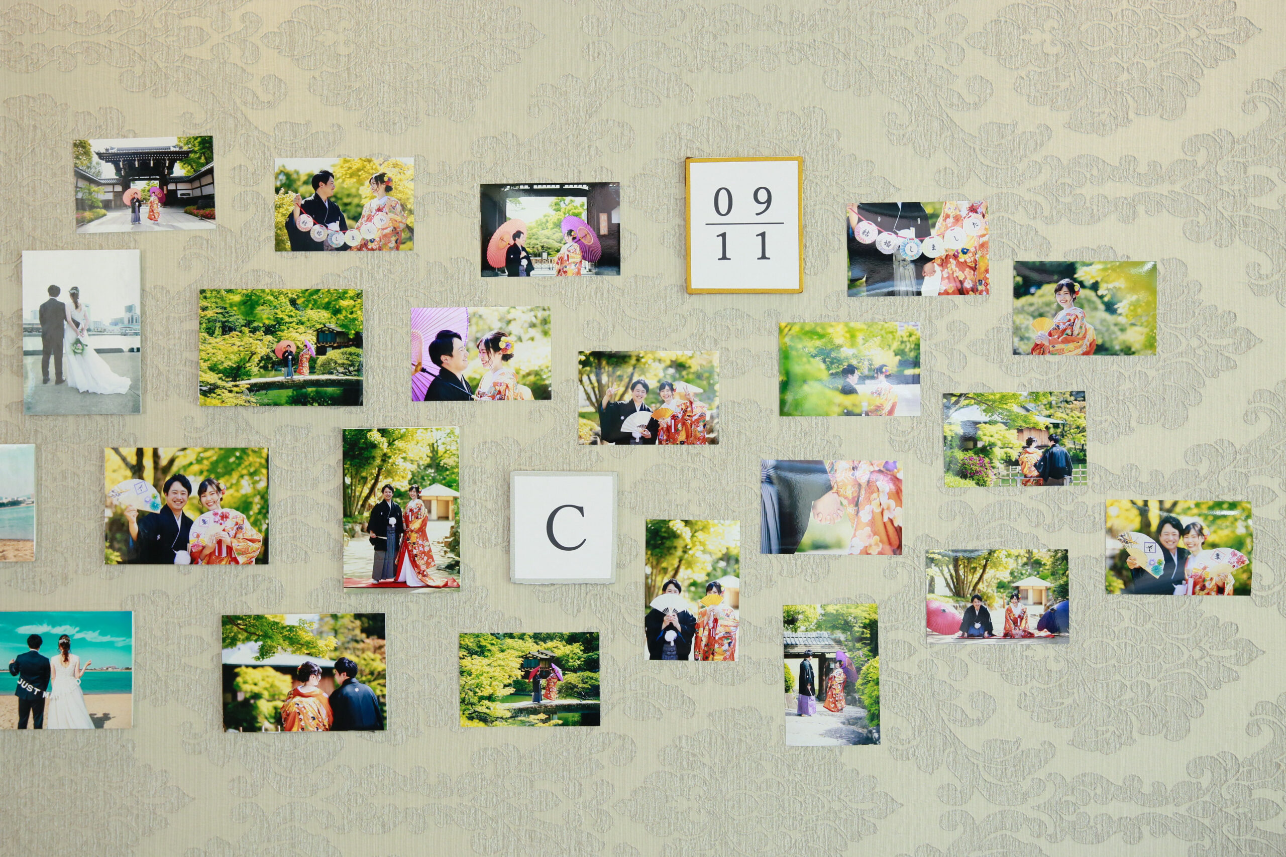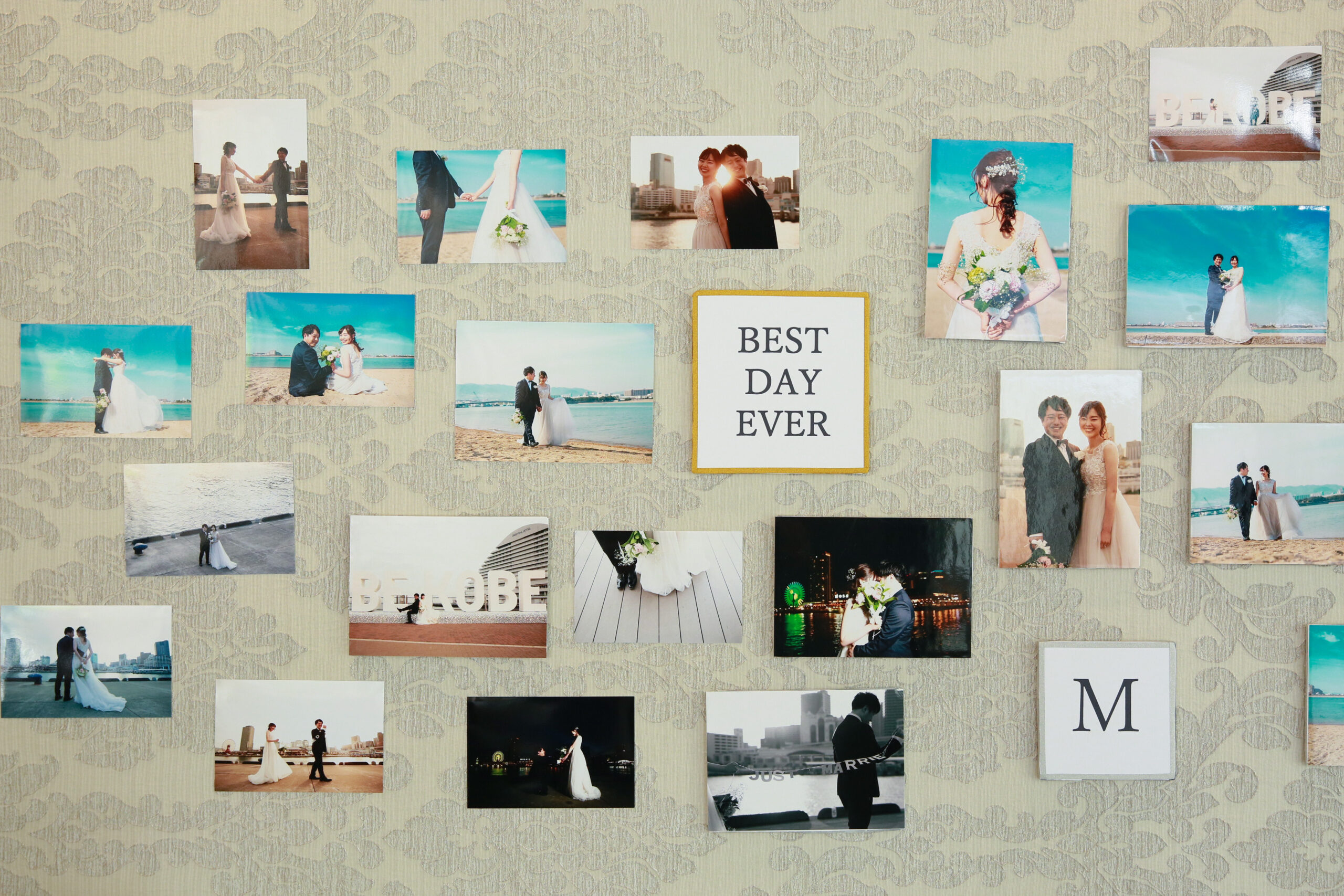 神戸の名所で撮影した前撮り写真を飾っておもてなし