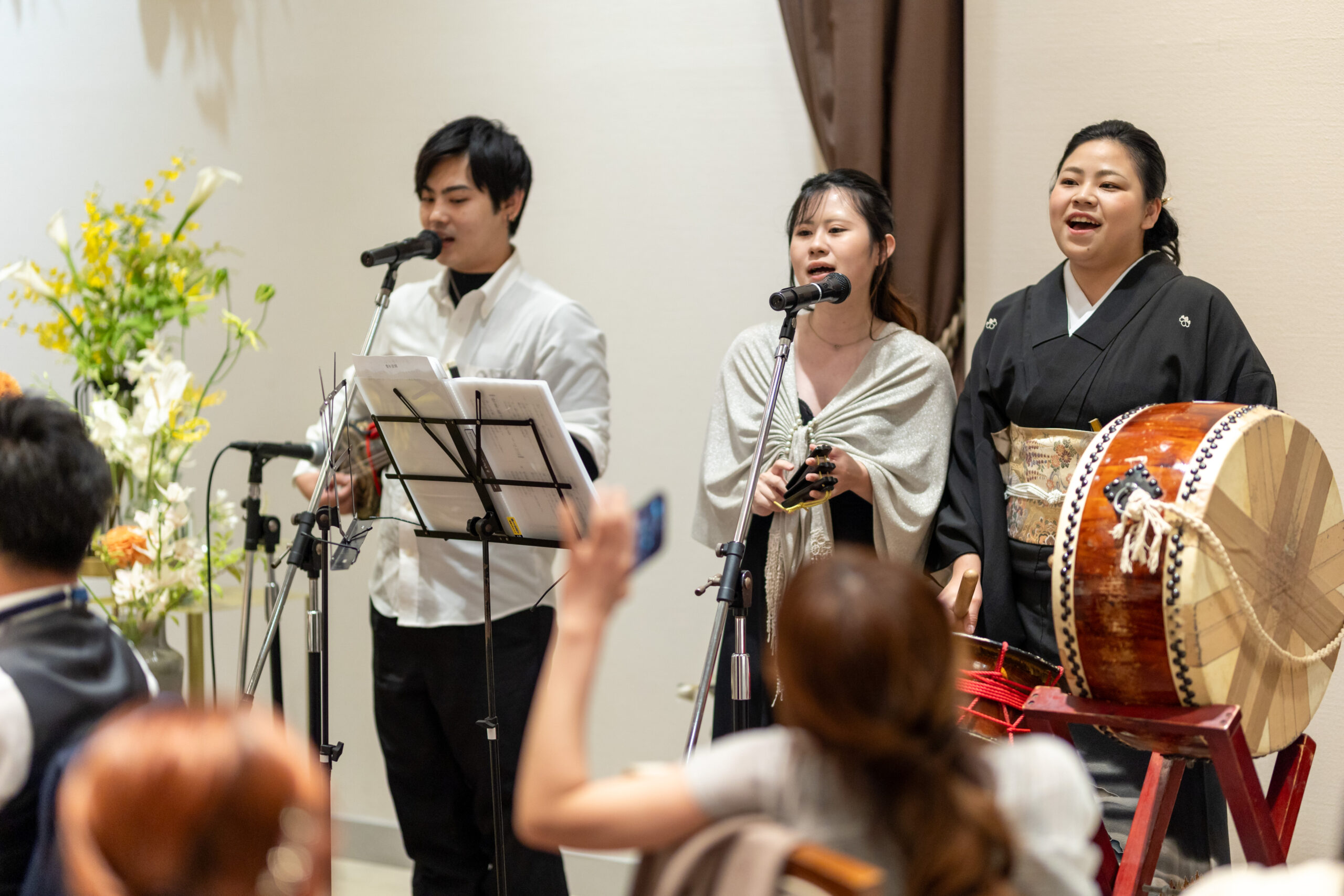 エイサー太鼓、三線の音色に合わせた美しい歌声により会場は沖縄一色に