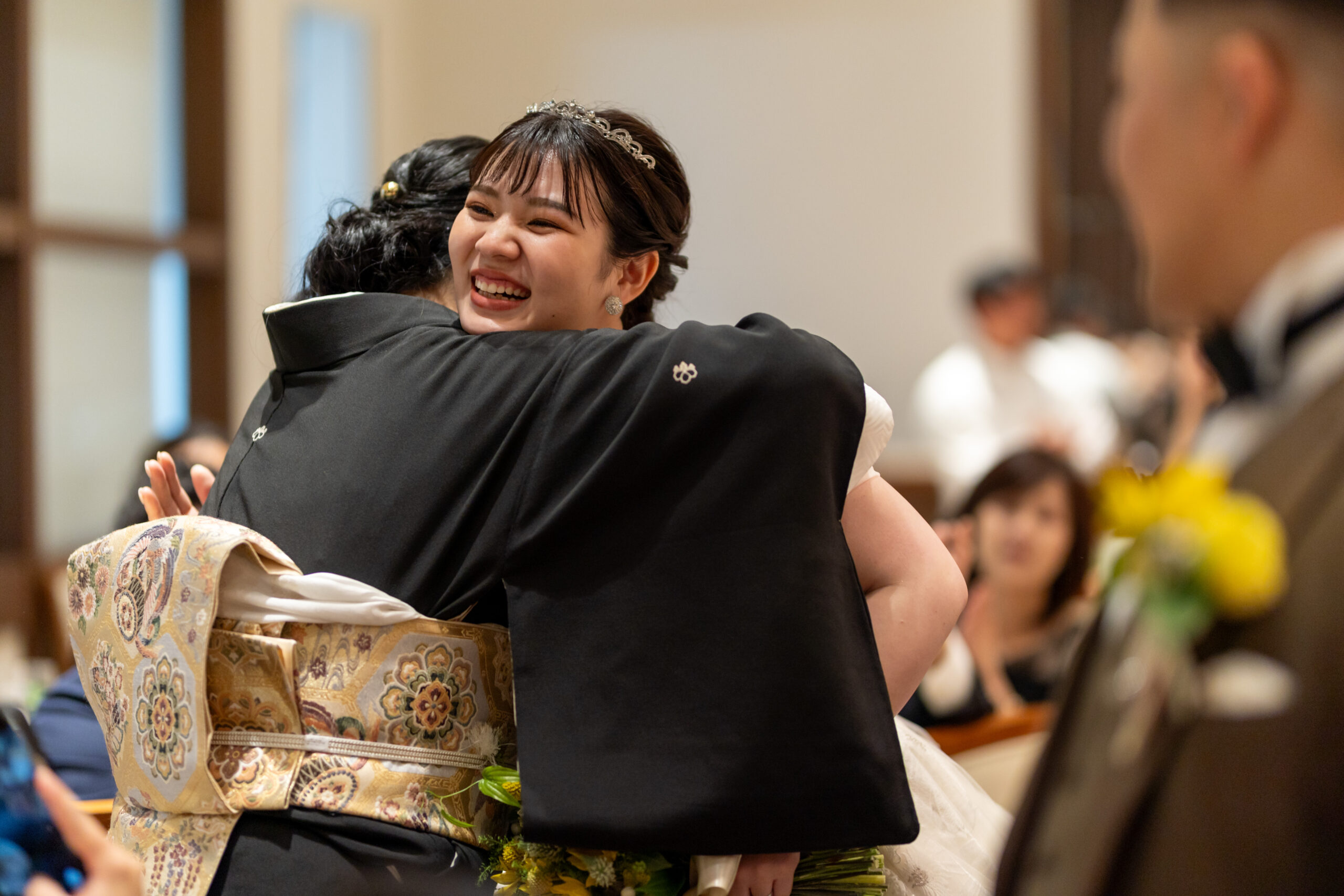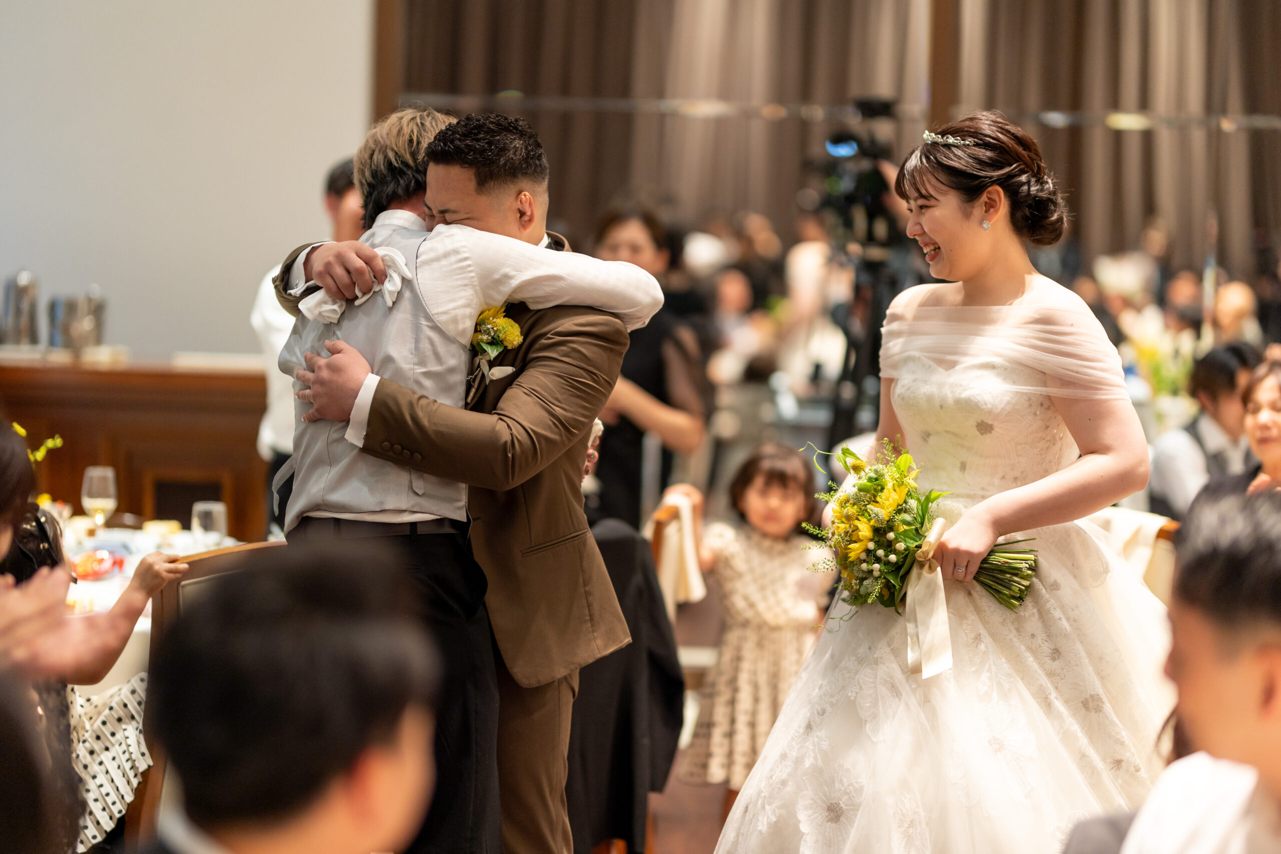 ご退場の瞬間までみなさまとハグを交わすおふたり