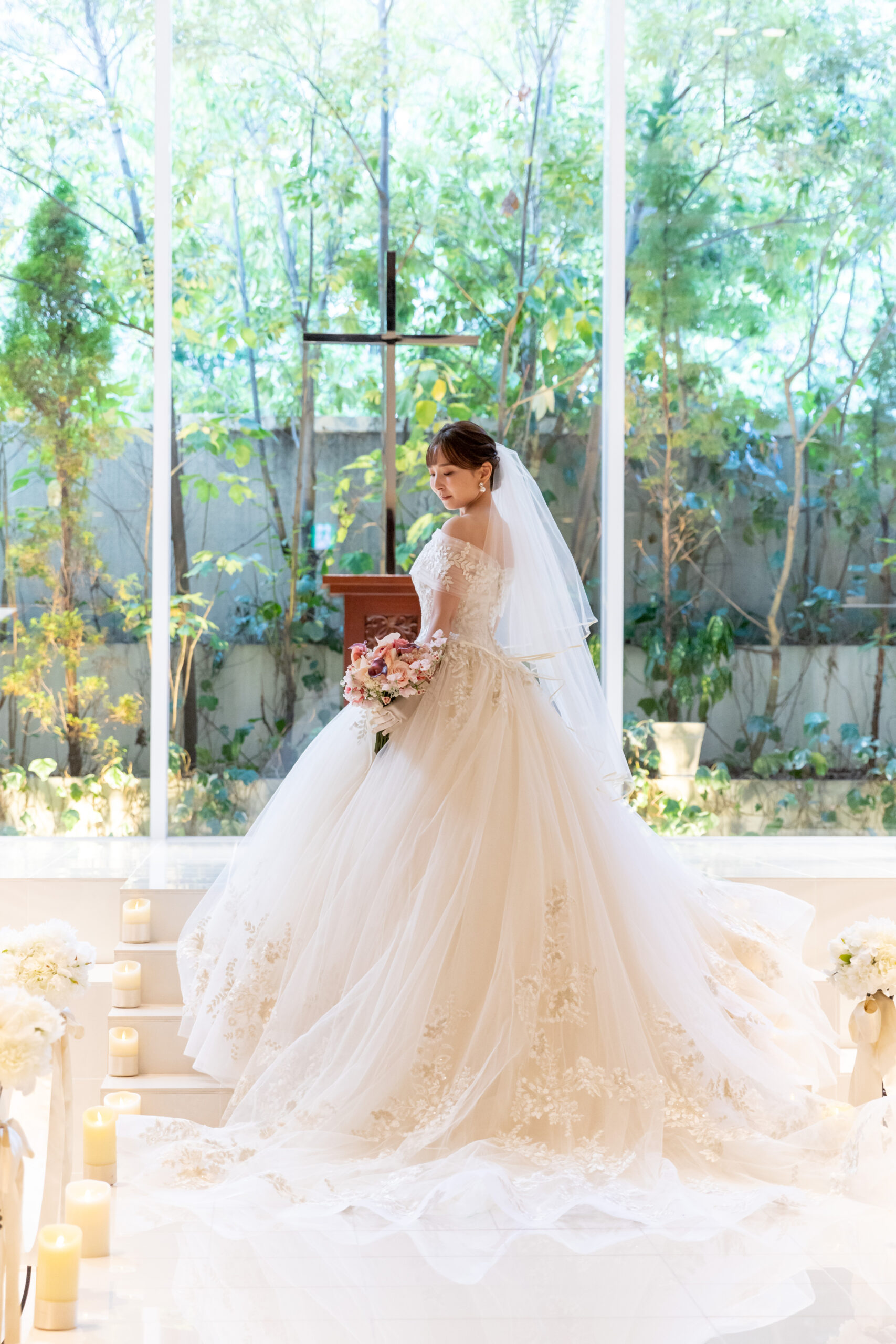 可憐で清楚な新婦さまにピッタリの、運命の一着をお召しになりました。