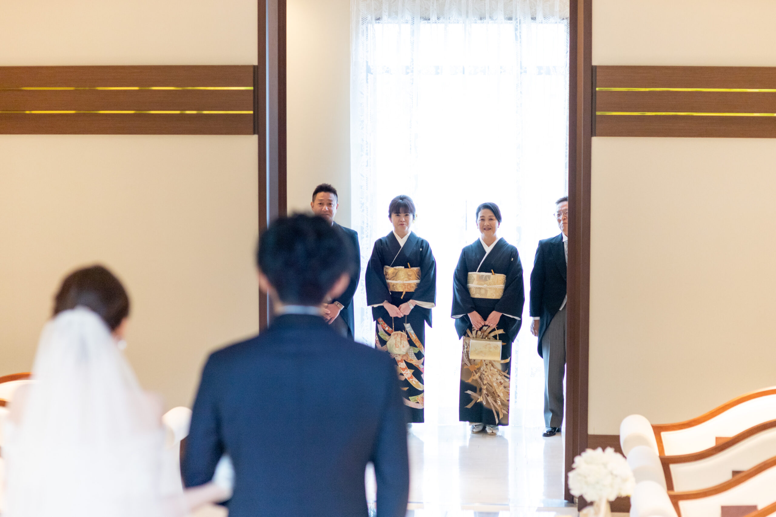 挙式前には、今まで大切に育ててくれた親御様へ「ファミリーミート」のセレモニーを。