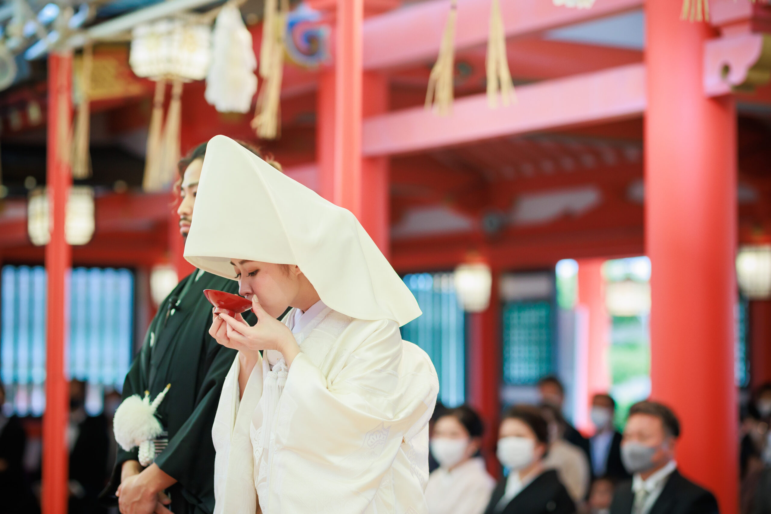 厳かな和装に身を包み、挙式を結ばれたおふたり。