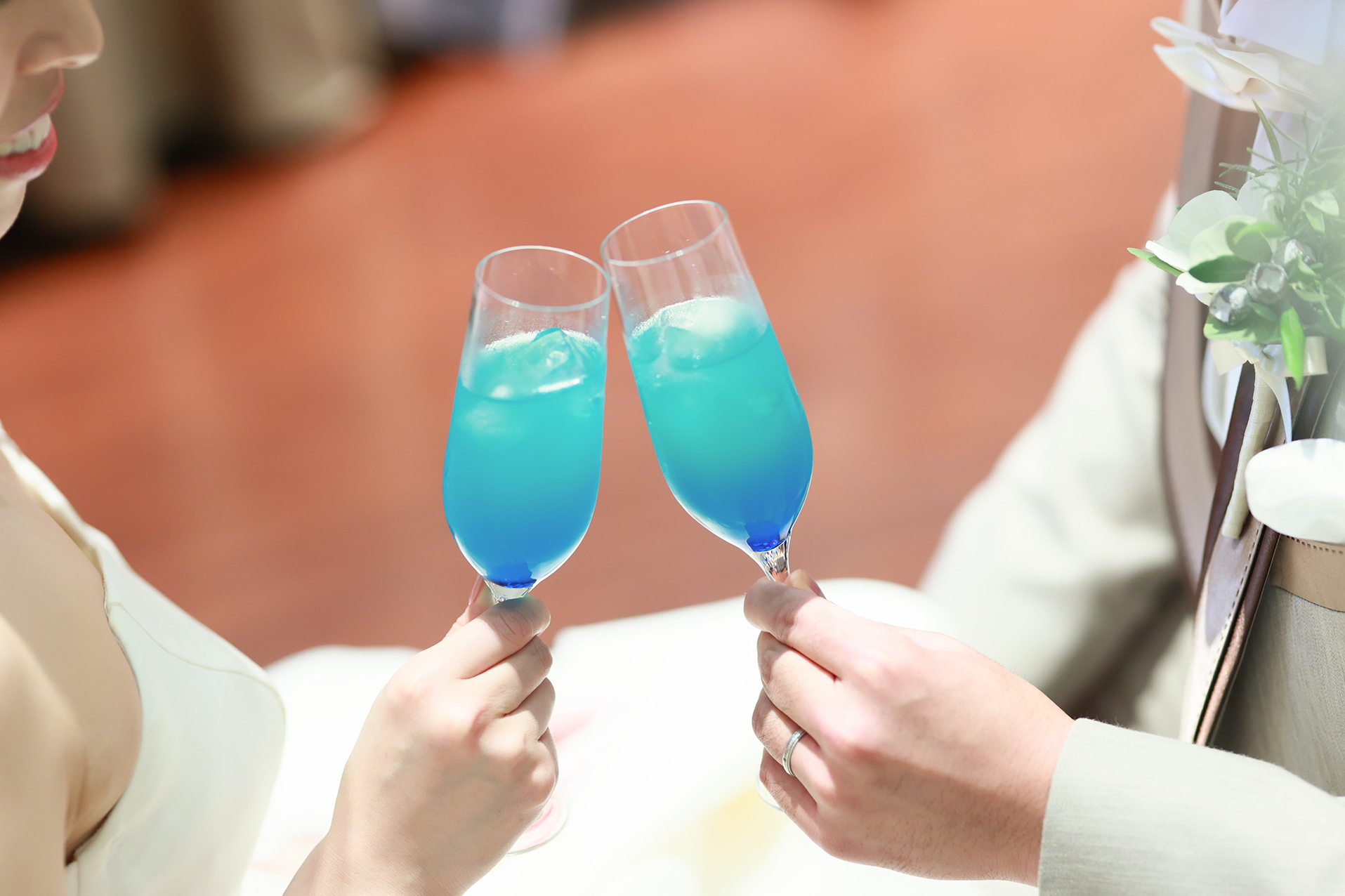 幸せを呼ぶサムシングブルーのカクテルで、おふたりも乾杯♪